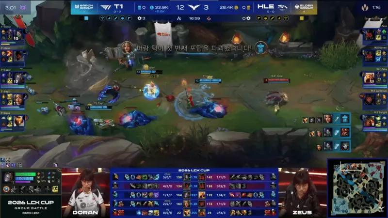 T1 2-1 HLE:Doran末选阿卡丽全场开杀,T1让一追二开门红